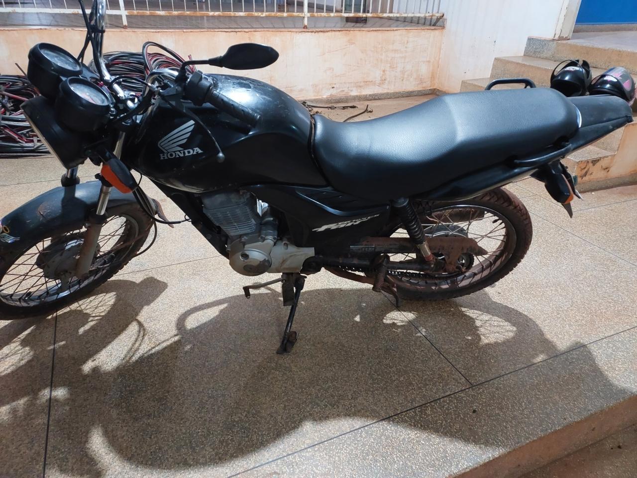 Após informações sobre um roubo em uma farmácia no centro da cidade, guarnição de Radiopatrulha do 10º BPM seguiu em diligência para tentar localizar os meliante, lograram êxito em localizar uma motocicleta Honda CG 25 Fan ES e dois capacetes com as características do roubo em frente à boca de fumo da penha, na rua Maringá, bairro Beira Rio.