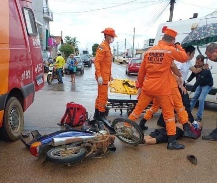 De acordo com informações apuradas no local, a motoneta seguia pela avenida quando ocorreu a batida no cruzamento. Com o impacto, o condutor foi arremessado ao solo e sofreu diversos ferimentos, incluindo lesões na região do tórax, lombar, coluna cervical e no rosto. Ele recebeu atendimento inicial ainda no local e, posteriormente, foi encaminhado a uma unidade de saúde.