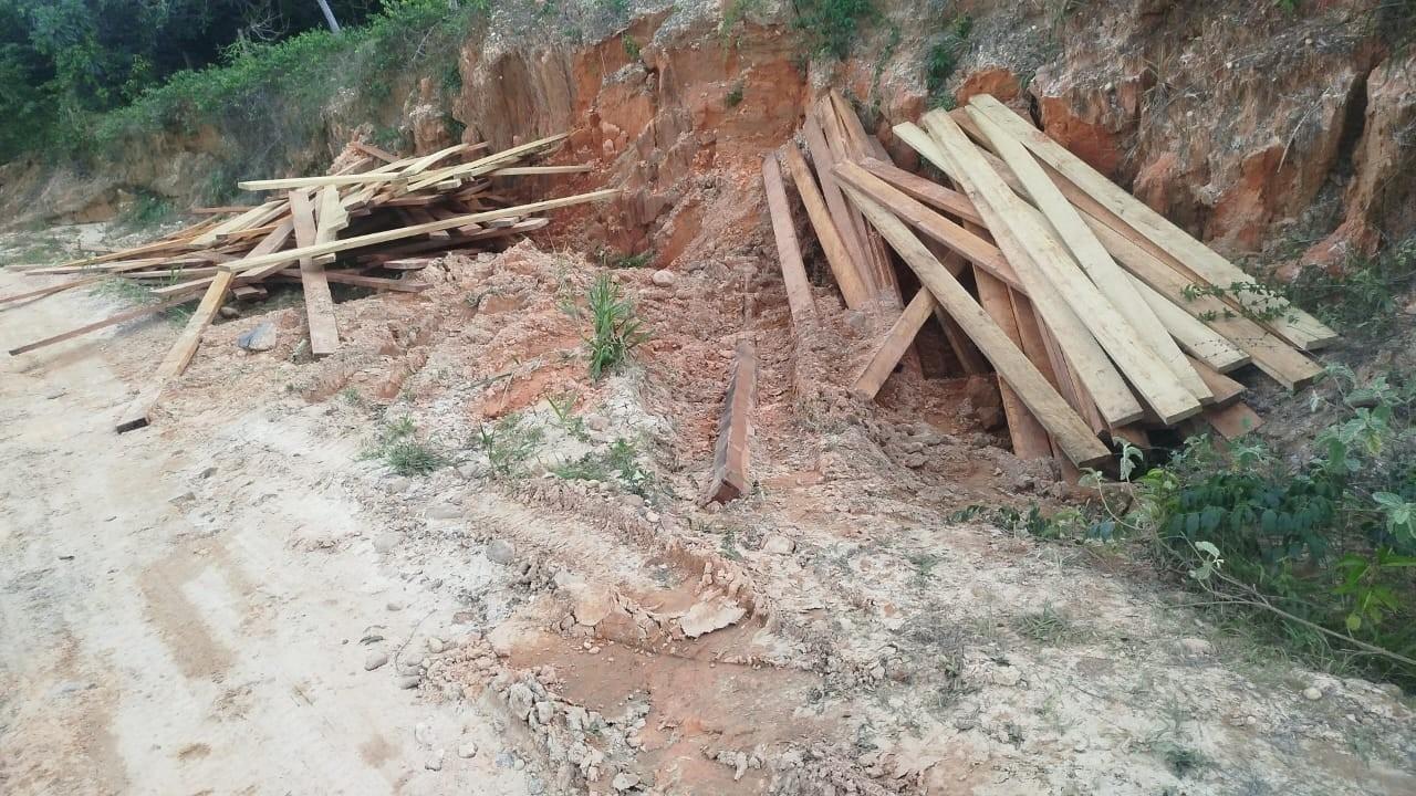 Durante a verificação, os policiais constataram que, em um trecho de aclive da via, havia aproximadamente 250 réguas de madeira, de essência não identificada, com cerca de 4 metros de comprimento cada. Pelas circunstâncias observadas, o material apresentava indícios de ser proveniente de extração ilegal, possivelmente oriunda da Área Indígena Tubarão Latundê, considerada área de proteção especial.