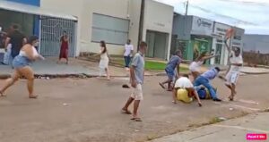 Vídeos divulgados nas redes sociais mostram um verdadeiro “campo de batalha” entre homens e mulheres.