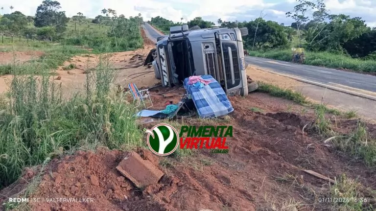 Um verdadeiro milagre. Essa é a definição dada pelo motorista de uma carreta que se envolveu em um grave acidente na manhã desta segunda-feira, 3 de novembro de 2025, no km 222 da BR-364, entre Pimenta Bueno e Cacoal.
